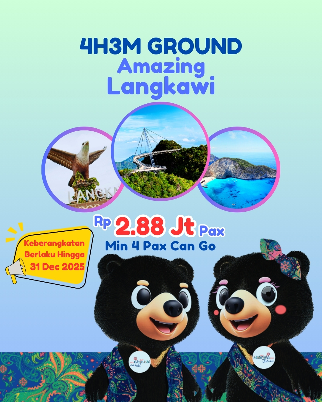 - Free & Easy sebelum penjemputan ke Bandara Internasional Langkawi (min. 3 jam sebelum keberangkatan)