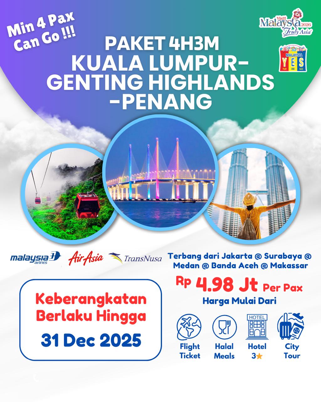 - Free & Easy sebelum 1x way diantar ke Bandara Penang (min. 3 jam sebelum keberangkatan)