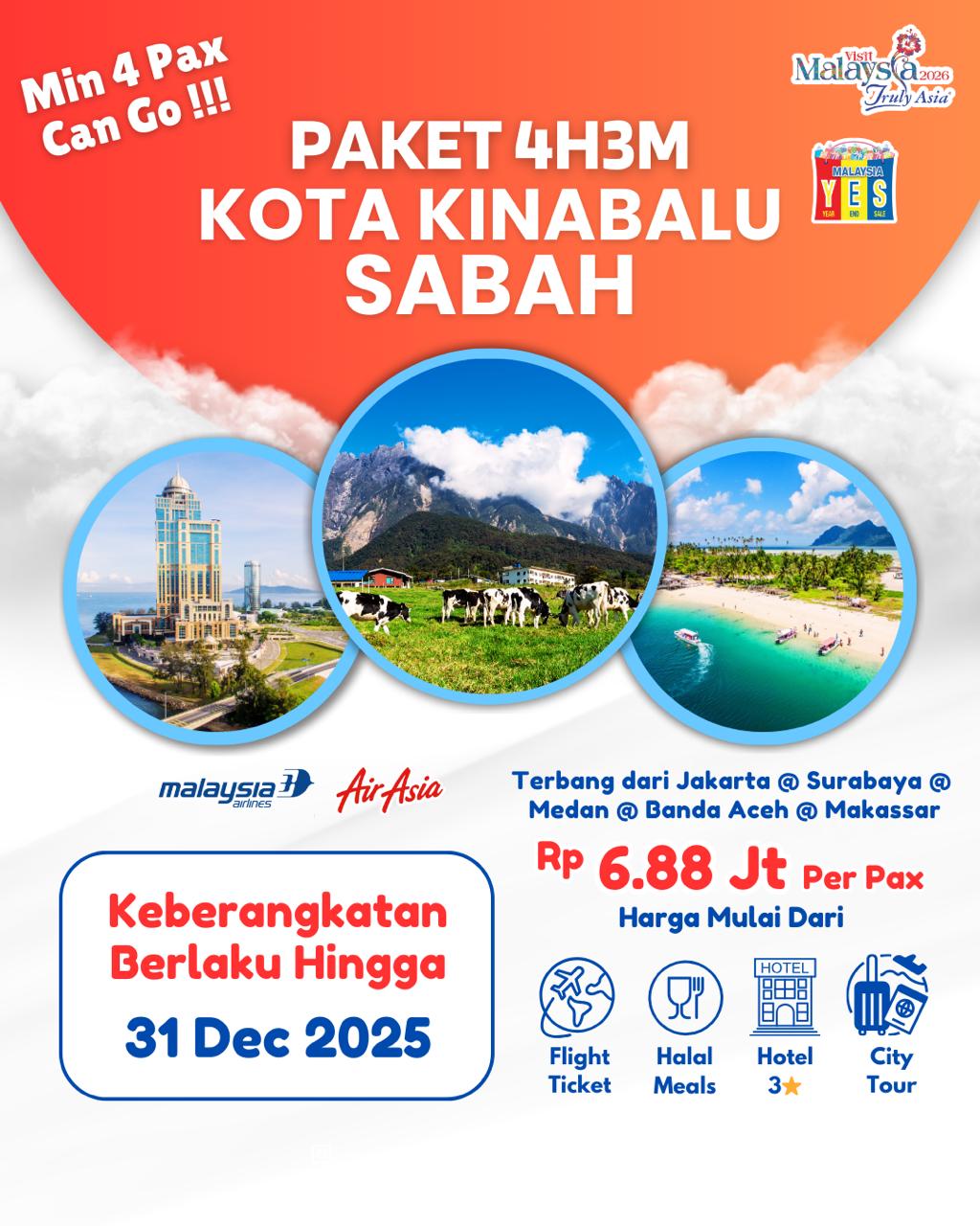 - Free & Easy sebelum 1x way diantar ke Bandara Internasional Kota Kinabalu (min. 3 jam sebelum keberangkatan)